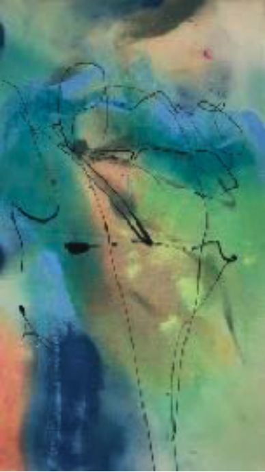 Recently, Suerig has concentrated on painting marks on canvas and paper with color and line gesture as if dancing in space.